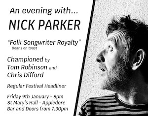 St Mary's Church Hall Churchfield Road, Appledore, Devon, United KingdomFor everyone who loves live music and intelligent song writing, Nick Parker is coming to St Mary's Hall in Appledore on Friday 9th January. Click here to buy tickets. It's an all seated gig. Nick embarked on a solo career and has toured extensively, releasing five full-length albums along the way, many songs from which Read More ...